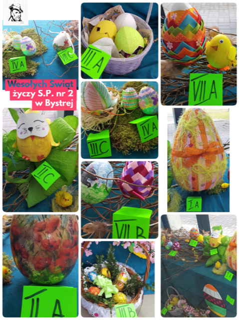 Konkurs na WIELKANOCNE JAJO w SP nr 2 im. Juliana Fałata w Bystrej rozstrzygnięty. Klasa 1a wygrywa bez dyskusji! Technika wykonania i rozmiar zrobiły swoje. Brawo!