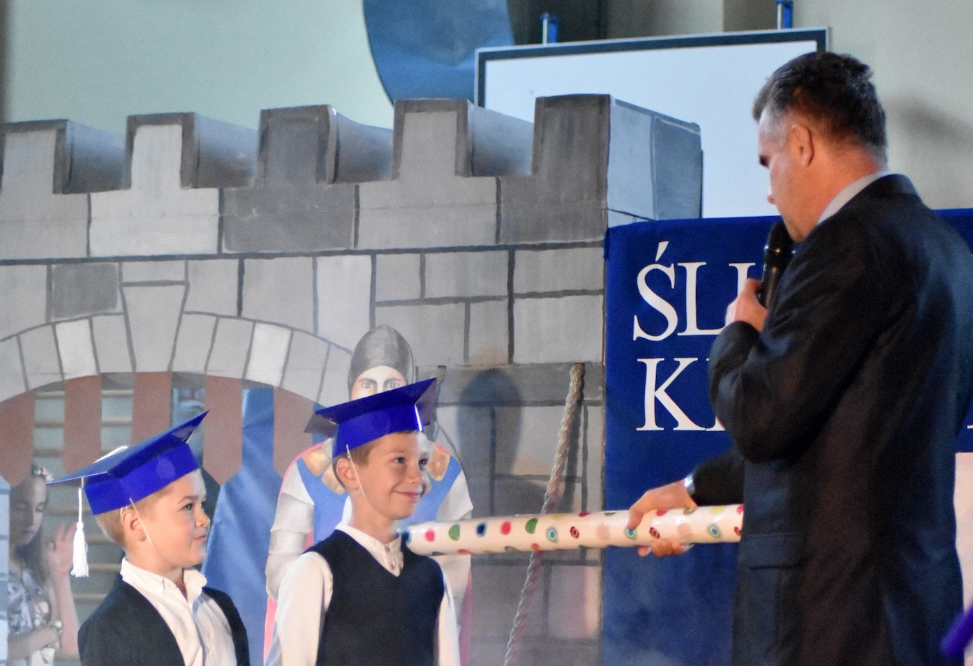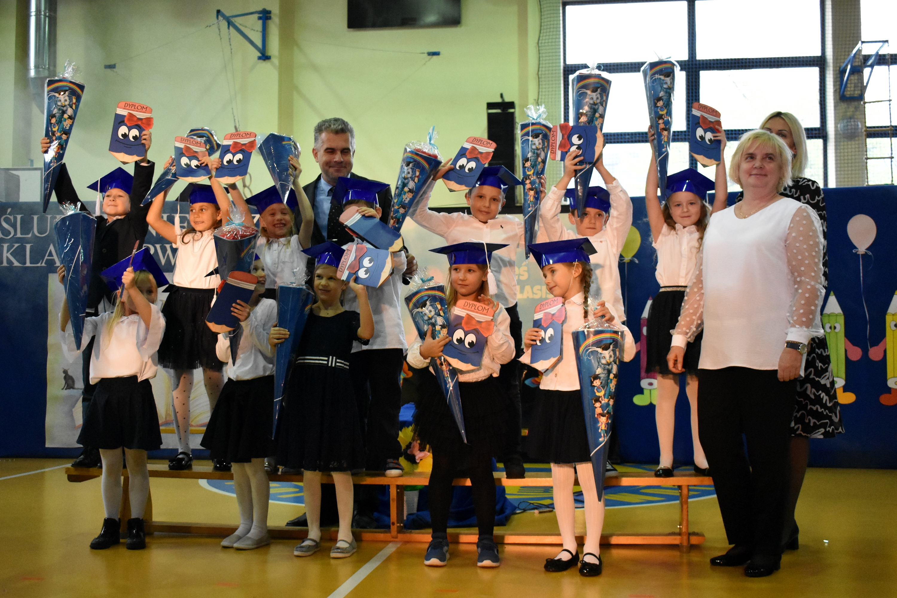 To wyjątkowe wydarzenie rozpoczęło się częścią artystyczną, podczas której najmłodsi zaprezentowali swoje umiejętności – recytowali wiersze, śpiewali piosenki i wykazali się wiedzą potrzebną prawdziwemu uczniowi. Swoim występem udowodnili, że są gotowi do rozpoczęcia szkolnej przygody. Najważniejszym momentem uroczystości był akt ślubowania, przejście przez wrota wiedzy oraz pasowanie symbolicznym ołówkiem dokonane przez Pana Dyrektora. Od tej chwili nasi pierwszoklasiści stali się pełnoprawnymi członkami społeczności szkolnej SP2 W Bystrej.