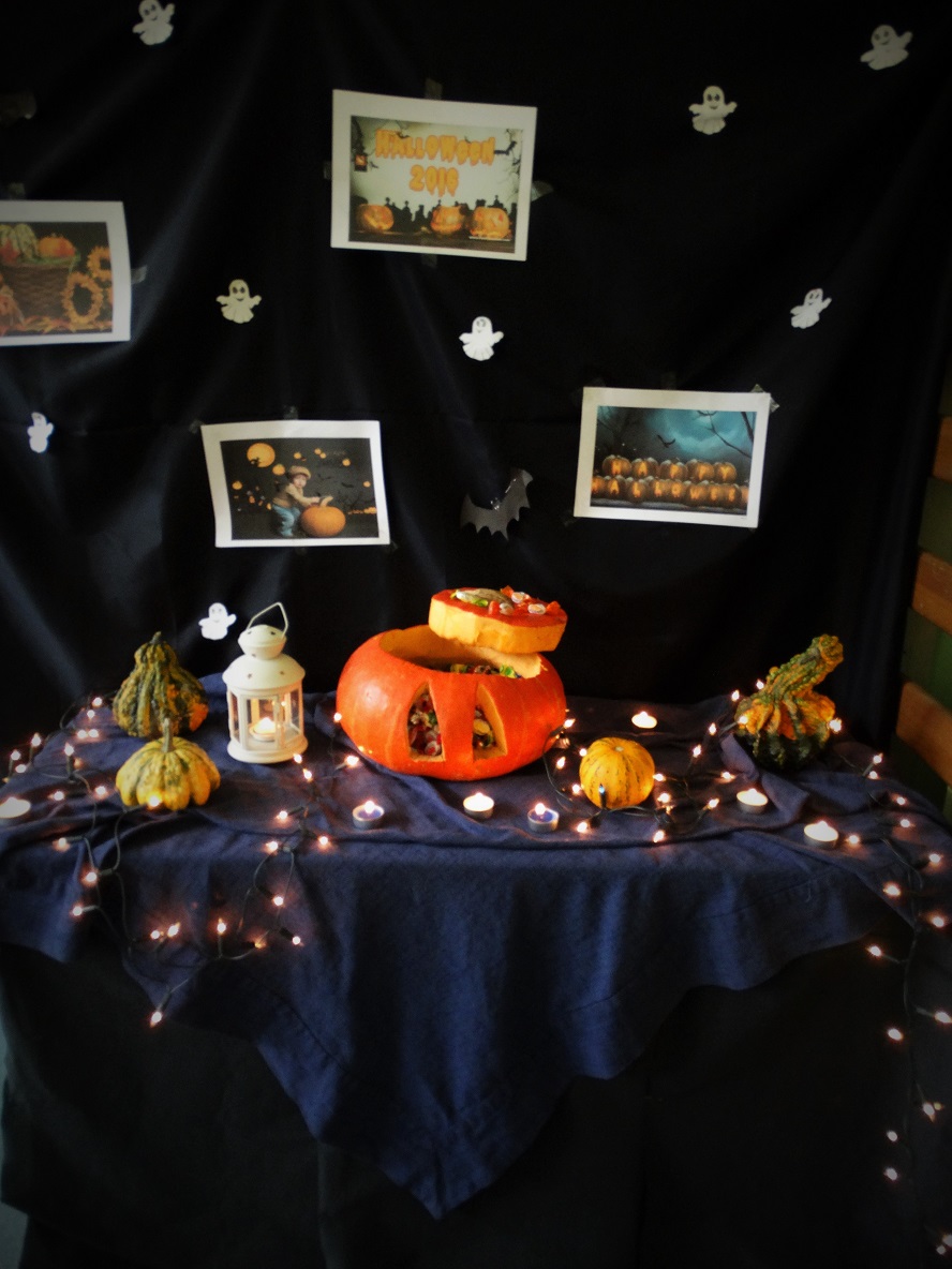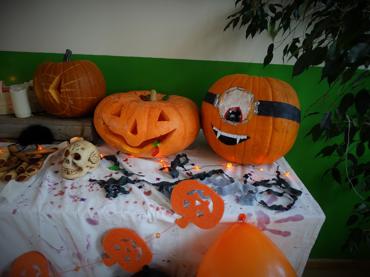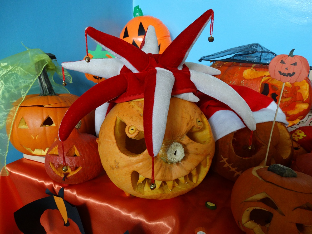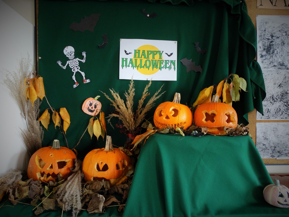 Kącik halloweenowy zadziwia. Każda klasa przygotowała klasowy kącik wymyślnych lub mniej wymyślnych rzeźbionych czy wycinanych dyń, a czasem także innych dziwnych przedmiotów. Dzisiaj, czyli w środę rozstrzygnięto, który kącik, według jury był najciekawszy. Wyniki i zdjęcia konkursowe: