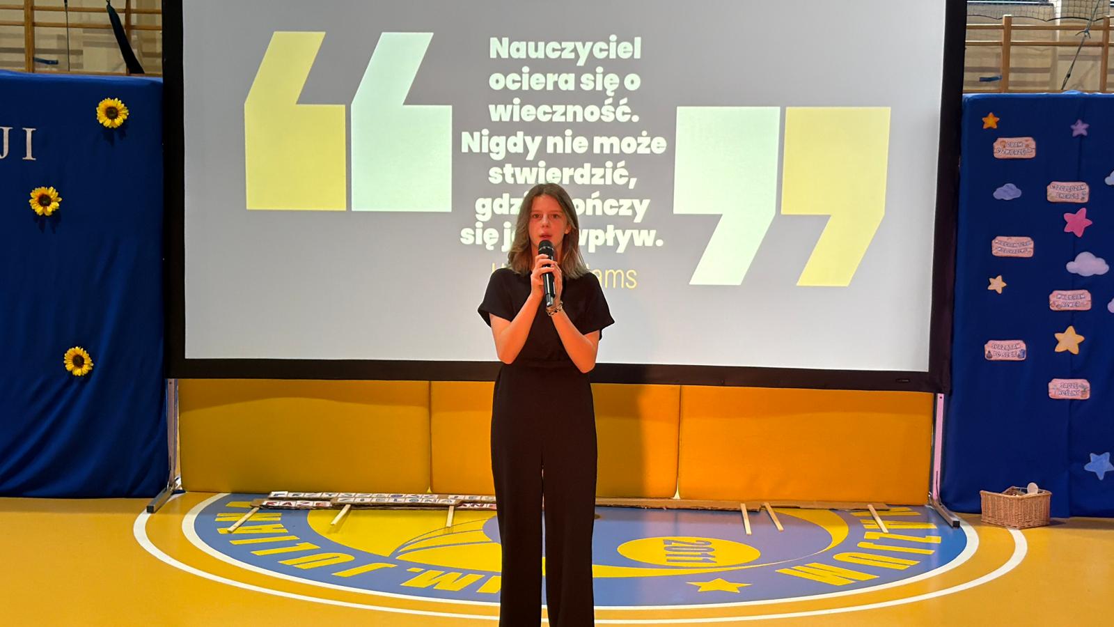 Wczorajszy wtorek 21. października w naszej szkole obfitował w wyjątkowa uroczystość z okazji Dnia Edukacji Narodowej. Uczniowie klasy 4a wraz z wychowawcą przygotowali piękną akademię pełną wzruszeń, wdzięczności i uśmiechu i teleportaji czasowej w przyszłość.